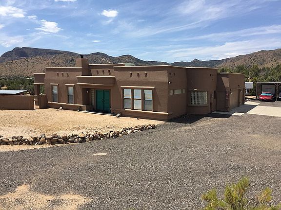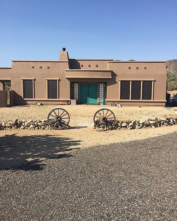 Southwestern Meets Modern in this Fabulous Custom Home. The main house has one bedroom, two bathrooms and an open floor plan with a dedicated dining area. The sleek kitchen has white cabinets, large pantry, plus a full wall of cabinet and a breakfast bar. Stainless gas cooktop, double ovens, microwave, dishwasher & refrigerator, plus RO system, built in desk, coffered ceilings and recessed lighting. Big living room has concrete floors, a wood burning stove, crown molding, ceiling fans and wall to wall windows to take in the breathtaking views of both the Mountains & Valley. Master has double entry doors, big windows, dual sinks, deep jetted tub, steam shower, separate water closet and large walk in closet with lots of shelves & built ins. The attached guest house has a separate entry with one bedroom, one full bath and a nice living, dining & kitchen combo. Total living square footage is 2,087, attached three car garage with auto openers, shelving, large covered patio wired & ready for a hot tub, built in grill and a dipping pool. All of this is just 5 minutes from town, nestled in the trees on 5 acres with a private well & horses are OK too.. 6125 N. Stockton Hill Rd. Kingman, AZ, on the West side of Stockton Hill Rd., my sign is at the driveway across the street from Cactus Wren Rd. Kathy Ortman.com RE/MAX Prestige Properties 928.530.5360 I Love Working Nights & Weekends