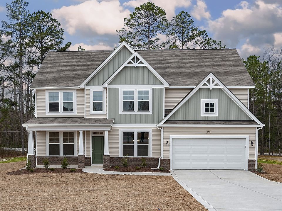 A Room for all your activities for the busy family. First floor features dedicated office or school room, open living room and kitchen area with gorgeous granite island and white cabinets. Formal dining room with coffered ceiling. The main floor bedroom and bathroom perfect for guest that cannot go upstairs. Upstairs features large master with sitting area or you could make the dream walk-in closet and be the envy of everyone you know, gorgeous master bath,walk in closet, media space or living area, laundry, 2 other guest rooms, a hall bath and loads of storage. Don't miss one of the last opportunities to live in this small community on the beautiful north side of Fayetteville with great schools, close proximity to 295, Ft. Bragg, shopping and restaurants. Only 2 homes left now
