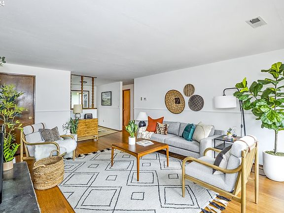 Minty fresh and cute-as-a-button, this one level ranch has had all the heavy lifting done for you while still owning its vintage flair. Enjoy a centerpiece wood burning fireplace and excellent floor plan with a lovely large yard. Undeniable conveniences award this home with a 9 Home Energy Score with its newer double paned vinyl windows and sliders, solar panels, tankless water heater, and high efficiency gas furnace. A modestly refreshed kitchen with pantry and new range has all the cabinet and counter space you’ll need, with a sweet adjoining dining area that leads out to the backyard. Three freshly carpeted bedrooms are warm and cozy. The primary bedroom has an ensuite full bath, double closets, and access to the back deck - perfect for waking up with the birdsong and sipping a hot cup of tea. Enjoy the rewards of the many updates throughout, including fresh interior paint, central A/C, new light fixtures and ceiling fans, PEX plumbing, and a newer sewer. The inviting backyard provides shade from mature leafy trees and doug firs to host social soirees. Fenced and private, it’s perfect for kids and pups at play! While the sunny south facing front yard has plenty of space for growing vegetables. Located in the Arleta neighborhood, right on the cusp of Foster-Powell and Woodstock - close to many parks & schools, easy commuting, and everything you need in SE Portland. This is an piece of cake home with lots of perks and personality! [Home Energy Score = 9. HES Report at https://rpt.greenbuildingregistry.com/hes/OR10232548]