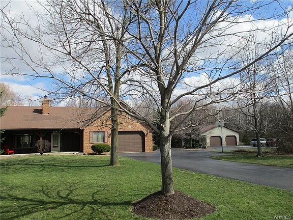 Well Maintained 3 BR 2 full bath Ranch home on 2 acres of beautifully landscaped property. Interior & exterior of the home is completely wheel chair accessible. Eat-in kitchen w/ breakfast bar, beamed vaulted ceiling, laminate floors & sliding door to patio. Stone wall w/wood stove insert, bay window, cathedral wood ceilings in great room. Mud rm /laundry w/ cabinets & large closet. One bath showcases a soaker tub w/ tile surround, separate shower & double sink vanity. Second bath w/ shower & large vanity. Six panel doors and ceiling fans thru out. Huge basement features two finished bonus rooms. Attached 4 car garage w/ walk up stairs to over head storage. Fenced Majestic 35 x 17 Vinyl in ground pool w/ salt generator system, Connected hot tub. 40 x 60 Outbuilding w/ large parking area.