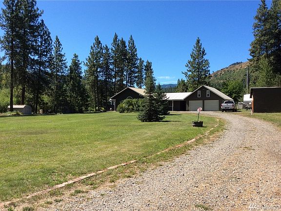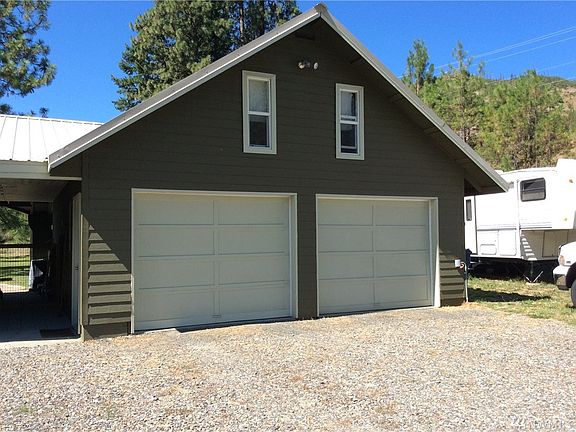 Comfortable home on 1.75 acres that is partially treed, flat, useable land. Lots of storage buildings, fun entertaining spots all around the house. Through the French doors off the living rm is a large firepit area & private hot tub. Out the slider off the dining/kitchen is a new patio with built in area for your BBQ. Master has 2 closets & 3/4 bath. Inviting living rm w/ large windows, vaulted ceiling, fireplace, and radiant heated tile floors. Attached 2 car garage has finished room above