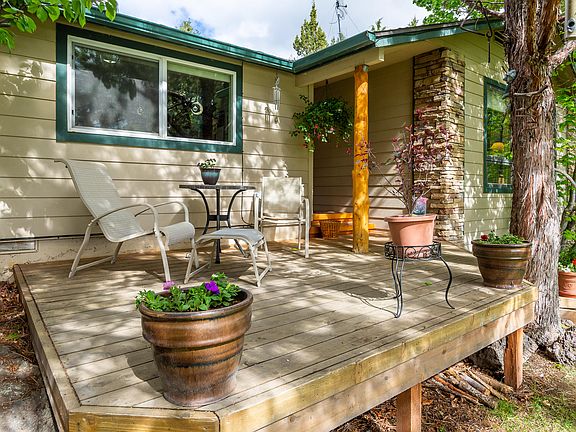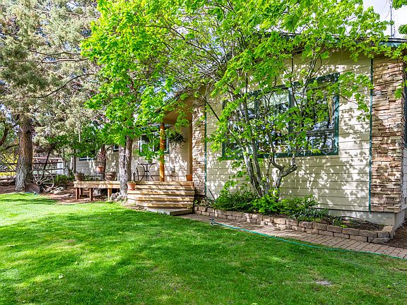 Beautiful sunrises & park setting nestled among a variety of trees giving privacy to this bird paradise on the 1/4 acre pond with dock all in your front yard!Single level 1918 sq ft ranch style home 4 bedrooms,2 baths & separate utility with sink.Roomy living room opens to the dining area with peek a boo Mtn views & spacious kitchen has knotty hickory cabinets,pantry,granite tile counters & slate tile floors.Master bedroom has sliding doors to deck & hot tub,2 hanging closets & built in drawers & cabinets for more clothing/shoe storage.Master bath has heated travertine tile floors,garden window,travertine walk in shower & countertops with double sinks.Home has attached single carport & det. oversized 2 car garage 1008 sq ft with cabinets & work bench.In addition near Parks & Rec land, 550 sq. ft. shop,20x40 pole barn,RV dump,animal shelter,fenced & cross fenced,mature fruit trees & irrigation is mostly underground.You don't want to miss this one!