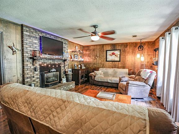 WELCOME HOME! This inviting home is situated on a 1.5 acre lot offering the peace and serenity that comes with country living! The spacious family room features beautiful laminate wood flooring, a brick front fireplace with gas logs, and a huge picture window which overlooks the front yard. In the kitchen you'll find lots of cabinets and counter space, stainless steel appliances, and a breakfast bar. The laminate wood flooring runs down the hallway and into the bedrooms. Three guest bedrooms share use of the roomy guest bathroom. A neat hallway nook with shelves makes the perfect spot to display family photos or could be used for extra storage. The cozy master bedroom has an attached full bathroom with tile shower. The laundry room offers some additional storage space and a mop sink. You'll love relaxing on the large covered patio with ceiling fan. An additional covered patio is located off the kitchen. HVAC system was replaced in 2020 and additional insulation was added at that time resulting in very affordable electric bills! A tankless Rinnai water heater was installed approx. 5 years ago. The detached storage building/workshop is wired and has an attached carport. Don't miss out on this one! Call today and schedule an appointment to view!