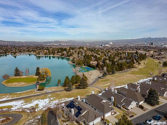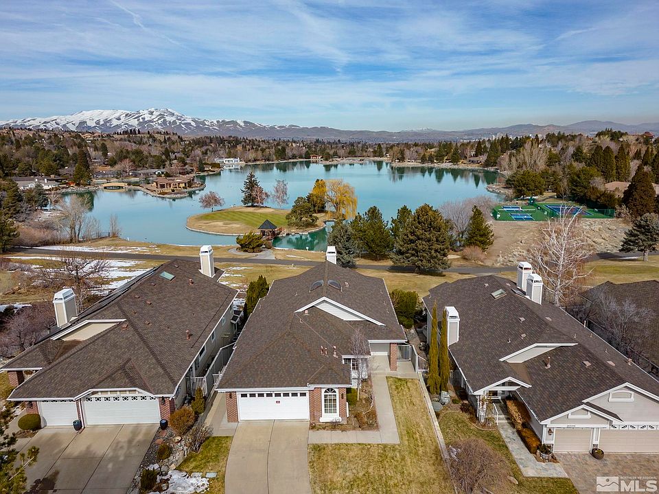 Welcome to the coveted gated community of Carriage House, where luxury meets comfort! This stunning home has unique views of Lakeridge Golf Course, including the iconic Signature Hole #15, an island green in Lake Stanley, with a backdrop of Peavine Mountain and the city. Step inside and experience elegance with a spacious floor plan, featuring a main level with an office, master bedroom, large kitchen, and living room with vaulted ceilings, gas fireplace, skylight and large windows that capture the view., Enjoy your morning coffee or entertain guests on the elevated deck that overlooks the golf course, offering a picturesque setting that is sure to impress. The master bedroom is complete with high ceilings, custom-built shelves, and a private door leading to the viewing deck. The master bathroom includes a jetted tub, shower stall, and large walk-in closet, providing the perfect space to relax and unwind after a long day. Additional features of this home include hardwood floors, new interior paint, and new carpet and laminate flooring, providing a modern and updated feel throughout. The lower level offers a spacious rec room, 2 bedrooms, 1 bathroom, laundry room, and 2 large storage areas, providing plenty of space for a growing family, grandchildren or guests. With its prime location within the quiet Carriage House community and stunning views of the Lakeridge Golf Course and beyond, this home is truly a dream come true.