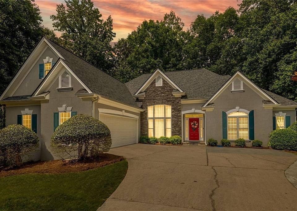 Step into the kind of home that truly feels like a retreat. This 5-bedroom, 4-bath custom-built ranch plan by Frank Beltz is tucked away on a quiet cul-de-sac and surrounded by trees that offer tons of privacy and natural beauty. Inside, you’ll find a bright and welcoming foyer that opens to a flexible room—perfect as a home office or cozy sitting area—alongside a formal dining room. Beautiful hardwood floors stretch through the main living areas, giving everything a warm, polished feel. The main floor’s private ensuite feels like its own sanctuary, complete with a sitting area, access to a private deck, and a stylishly updated bathroom. Looking for space to spread out? The finished basement checks all the boxes, offering a large family room, bedroom, full bath, walk-in closet, a heated shop, and even a second driveway leading to an oversized garage ideal for storing your boat, tools, or weekend gear. Thoughtful upgrades include a 75-gallon gas water heater, copper plumbing, and recent updates to major systems—HVAC (2021), roof (2020), and a freshly updated deck (2024) with new decking and railings. There’s also plenty of extra parking thanks to the extended second driveway. The backyard offers both peaceful views and playful potential. Think treehouse, garden, or even paths that lead you right out to Lake Lanier via Corps of Engineers property. You’ll also have access to neighborhood amenities like tennis courts, pickleball, and a community pool. Plus, you're just 5 minutes from the Bolding Mill boat ramp. Stucco is hardcoat and warranty available. Ask about the buy down rate.