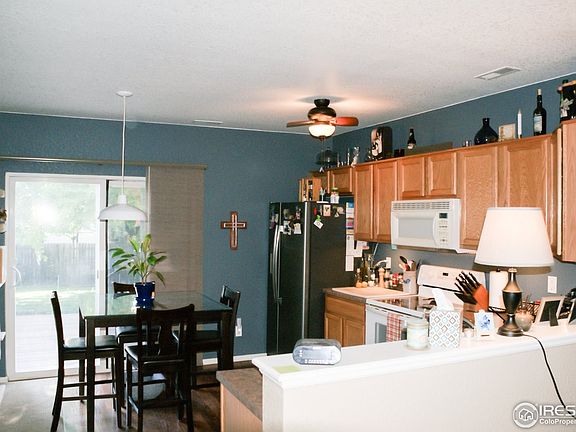 Move in condition inside & out! 3 bedroom, 1 1/2 bath home with oversize 1 car garage. Extras include hardwood floor in kitchen, Central AC, ceiling fans, extra elect sub panel, washer/dryer included. Well landscaped fenced yard with deck, patio, sprinkler system. Master bedroom has walk in closet and direct access into shared bath. Small town living with central location to Denver, Boulder, Longmont, Loveland and DIA.