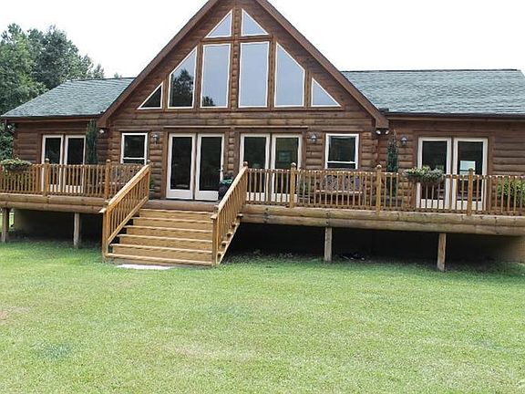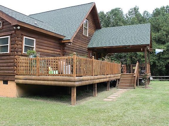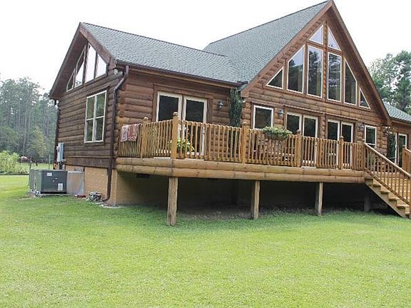 Little Cabin In The Woods...But WOW, what a very nice cabin! Even though it is a 1 bedroom and 2 baths, it has an open floor plan that will accommodate a few more folks, especially in the loft area. The kitchen has all upgrades with stainless appliances and granite, with extra bar seating. The large family room has plenty of windows that lets in lots of natural light. Outside there are covered porches on the front and back to enjoy nature at its best. This real log cabin is real wood logs on the outside and pine on the inside and is beautifully situated on 6.8 acres, partially cleared and some wooded. Oh what a beautiful place to live! Call J. Ray Realty at 642-8111 or Ricky Harrelson at 770-4130.