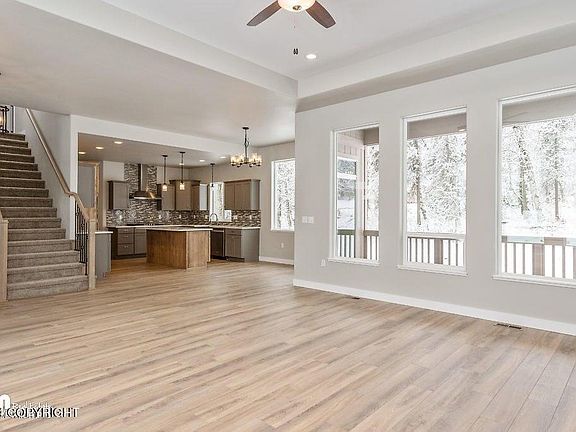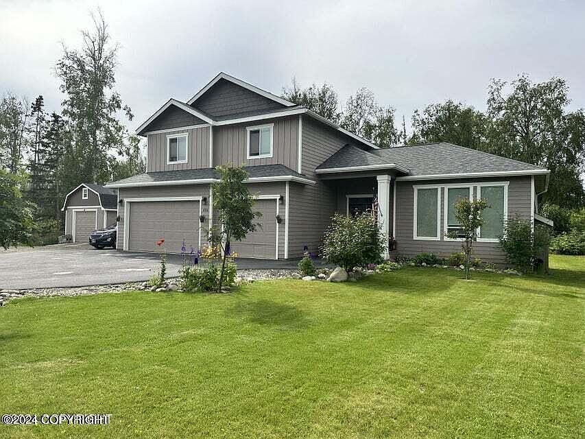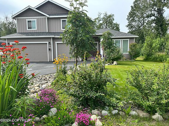 Stunning single family Palmer home! Like new, 2019 build. Bedroom and full bath on main floor offer possibilities for guests or family. 3 bedrooms and 2 full baths upstairs. Quality finishes including quartz counters, SS appliances, & tile accents. Home floods with natural light coming through the many windows. Beautifully landscaped yard with perennials and berries. Generator hook up.(SEE MORE)Spacious shed with gas and electric for workshop and/or toy/tool parking. Pad for additional parking. Some photos prior to paint and landscaping.