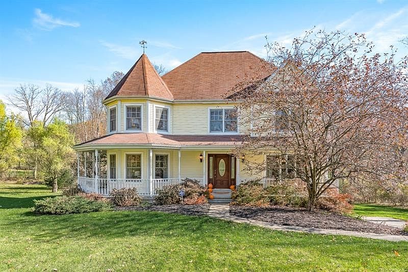 Move in ready! This beautiful Penn Twp, Butler Cty home rests on an acre+ of usable and private yard in an easy walking neighborhood. A wrap around porch and large back deck gives you opportunity to enjoy the outdoors. Once inside, you will be transported into a light and airy lifestyle with large rooms, good flow and soothing decor. Large family room features 5 turreted windows and pocket doors to the home office/school/flex room with fireplace. Open kitchen with new quartz counters, huge island and two pantries - one is walk-in! The dining room can hold your biggest table and chairs. Upstairs find a huge owners suite with a 5 window turret, perfect for showcasing that king-size bed! Large walk-in and master bath with jetted tub. An additional three bedrooms grace with level, one with adorable built-ins and window seat. Lower level is currently a home gym but could be finished to enhance the walk-out to the beautiful yard. Oversized garage with extra storage (wine cellar?). Come see!