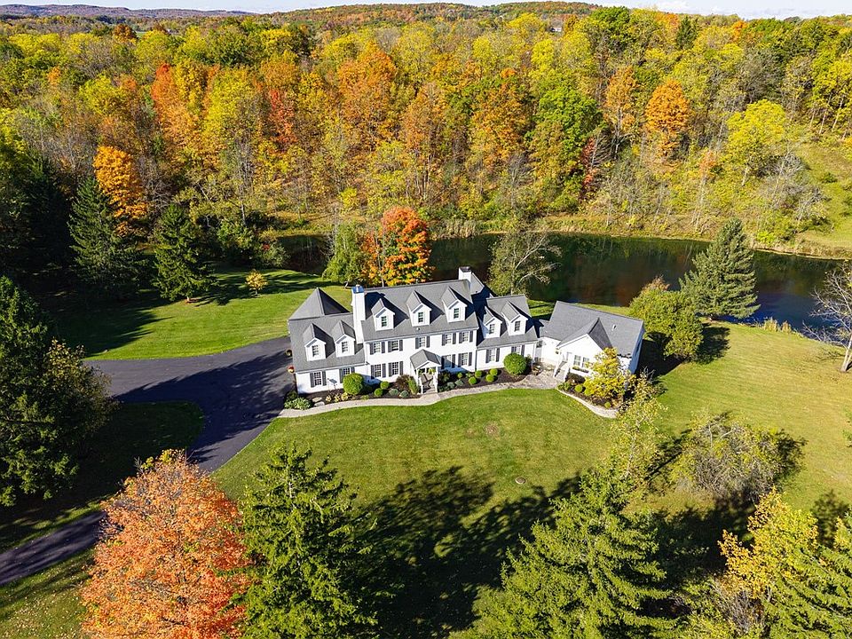Luxury estate nestled on 35 private acres located less than 10 mins from the north end of Canandaigua Lake, this remarkable property offers the best of both worlds- peaceful seclusion surrounded by nature, with convenient access to all the Finger Lakes region has to offer. Enjoy boating,waterfront dining,shopping & award-winning wineries just minutes away. Outdoor enthusiasts will love being a short drive to Bristol Ski Resort & its only 40min to Rochester! Extensively remodeled with exceptional attention to detail, the home combines modern sophistication with timeless comfort. The designer kitchen features a massive island,high-end appliances,quartz countertops,radiant heated floors,custom cabinetry & oversized windows that fill the space with light. A double-sided masonry heater with a wood fired pizza oven combines the dining & living room. While the cozy family room features a stone fireplace. Upstairs, there are multiple bedrooms & bathrooms including a primary suite with a walk-in closet. Also, the finished attic with its own full bathroom offers flexible space. An add. 1,000sqft of finished basement space expands your living space. Private in-law suite with a completely separate entrance,kitchen bath, ideal for a possible rental or guests. The land has a stunning mix of mature woods & rolling terrain w/ private trails that wind through the landscape. A picturesque creek,diverse elevation changes & abundant wildlife make this property perfect for hunting,horseback riding,hiking & four-wheeling. Whether exploring your own wooded trails,fishing in the stocked pond or relaxing on the deck,every part of this property invites you to slow down & enjoy the beauty of nature in total privacy. For horse enthusiasts it includes a beautiful 6-stall barn with walkouts to fenced pastures & an outdoor riding arena with excellent footing. A second barn provides ample storage space. This exceptional estate represents a rare opportunity to own luxury, acreage & serenity in one of NY's most sought-after regions. Whether as a full-time residence, a possible new income generating endeavor, hunting retreat or equestrian haven, it's a must see in person! Sq Footage per Appraisal