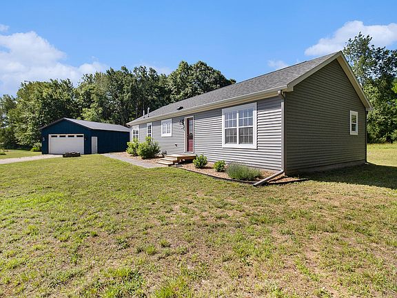 Built in 2021, this 3-bedroom, 2-bath home sits on 10 wooded acres near downtown Manistee. Rainbow Bend river public access to the Manistee River just down the road. Enjoy a spacious open floor plan with a large living room and kitchen—perfect for entertaining or relaxing in nature. Includes a detached 2-car garage, offering great storage and convenience. Peaceful setting with outdoor adventure at your doorstep! Enjoy easy access to shopping, dining, and lakeside fun.