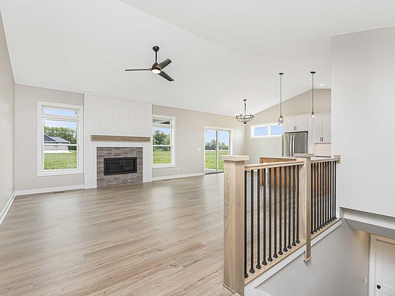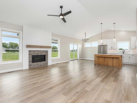 Built by Wood Builders this beautiful ranch home with 2x6 energy savings exterior wall construction is in an awesome neighborhood! This 3 bedroom, 2 bath home boasts luxury vinyl floors throughout the main level, great room with fireplace and shiplap that opens to the beautiful kitchen with a full package of appliances, island & pantry. Also there is a very convenient mudroom with cubbies & bench. Enjoy the beauty of quartz countertops in the kitchen and all bathrooms. There is an enlarged primary bedroom suite with tray ceiling and 2 additional bedrooms. The lower level is available for future finish. 14x12 rear attached covered porch and 3 car garage.