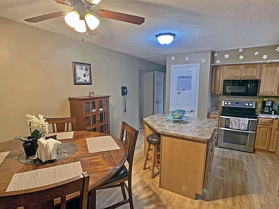 - Kitchen Features: Wood Cabinets, Island, Laminate Floor, Walkout