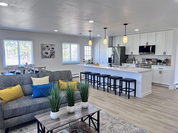 This great open ranch in Columbine Hills has over 13K sf of lot size ready to build a huge garage on and create your own oasis at the end of a culdesac. Home is ready to move in and enjoy the Colorado summer, especially if you like to boat, bike and access trails and parks - great location on southwest side of Littleton. The layout has been created to give a much more welcoming feel with an abundance of natural light from all the windows in the main area, it will just lift your spirits upon entry! There are 3 bedrooms and 2 bathrooms on the main level. The kitchen has 42" farm-style white cabinets with soft close and sleek black pulls. The 11' quartz slab is center/focal point of the main room with sink, dishwasher, drop lighting and additional cabinets/drawers and space enough for 5-6 stools. Stainless Steel appliances all brand new and can be programmed to your phone. The pantry is a true benefit to the layout. Recessed/lights have been installed throughout the main living area and hallway. New front door with keypad and back door with windows, access door from the garage directly into the home was installed, so you no longer have to go out from the side door to enter the house through the front door (although that door is still there and will serve as a great service door for the 2-car garage which even has a doggie door).