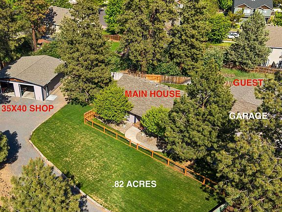 Rare, one-of-a-kind property in the heart of Bend! Come see this SINGLE LEVEL 3bed/ 2bath home, with attached 1bed/ 1bath Guest apartment, Mother-in-law suite, or easy conversion to ADU, with a huge, detached 35'X40' finished shop with power, heat and oversized doors- all on .82 acres! Guest quarters has own entrance and 1/2 bath. No HOA or CC+R's. Expansive lawns and open areas with mature trees, all fully fenced. Bring all your toys, RV, boats, pets, family, friends, and never run out of room! This property would be a gardener's dream. All of this and just minutes to the Deschutes River, Old Mill, Hayden Homes Amphitheater, Fred Meyer, Bend Outlet Mall. Vaulted ceilings with open-concept living, gas fireplace in the living room and studio. Instant hot water. Hardwood floors and upgrades throughout. Properties like this don't come around often, start living your dream life today!