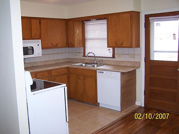 2 bedroom 1 bath 1/2 duplex with garage and fenced yard on quiet cuddlesac. Walk to price chopper Westlake hardware starbucks etc. Has hardwood flooring throughout. Comes with frig, stove, microwave, dishwasher, disposal, washer/dryer. garage door opener with remote. Pets welcome with additional 35.00 per month per pet rent. No cost application fee. Deposit same as 1 month rent. Tenant pays for all utilities and yard care