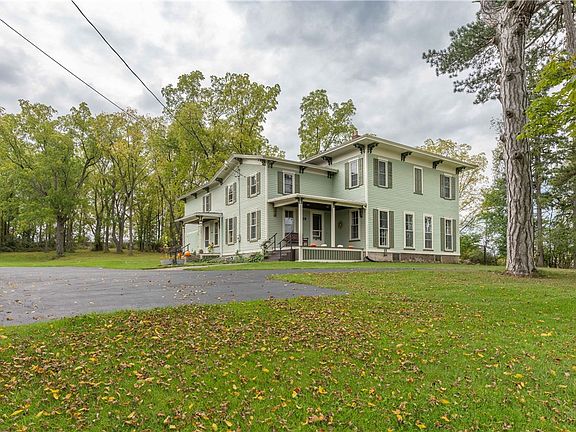 Welcome to this expansive farmhouse, blending charm with modern convenience in Livonia! The open-concept design features stunning pine farmhouse floors and elegant parquet accents, plus soaring 10’ ceilings. This home is ideal for both entertaining and everyday living. The updated kitchen offers plenty of room for meal prep and gatherings. Freshly painted throughout, the home boasts 4 spacious bedrooms and 2 full baths, along with generous living and dining areas. Step outside to find a large patio perfect for outdoor relaxation, all set on 5 acres of private land. The property includes a 30'x100' pole barn, a new electric hot water tank (2024), and a tear off roof (2014). Water is provided by a well with a reverse osmosis system, while a second well is designated for irrigation of the lawn and garden. Additional updates include a newer septic system (2009). 3,201 SF of total living space, measured and verified by an appraiser. This property offers country living with all the amenities! Delayed negotiations until Tuesday October 1st 10am.
