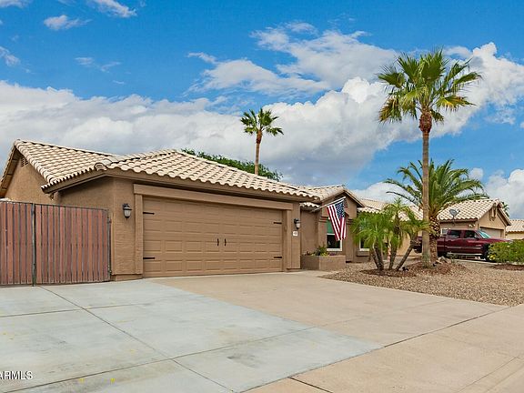 This fully landscaped retreat boasts a large pool, Jacuzzi, spacious custom ramada, covered patio extending the length of the house and paved pergola covered courtyard currently used as an outdoor gym and workout area. Float in the pool while watching the palm fronds sway in the breeze. Enjoy the lovely raised bed gardens filled with flowers, fragrance and even an herb and vegetable garden to inspire meals you can enjoy al fresco under the stars. The automatic sprinkler system makes caring for your oasis easy and relaxing.