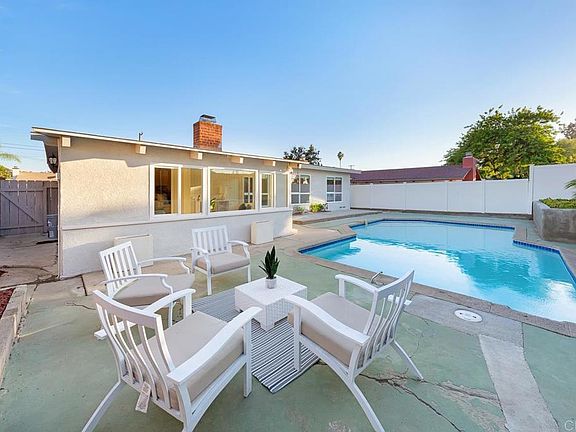 SINGLE LEVEL. POOL. MOVE-IN READY. PRIDE OF OWNERSHIP. OWNED SOLAR PANELS. Known for its charm and sought-after school district, this Fletcher Hills home is between La Mesa Village and Mission Trails/Cowles Mountain. Step inside to find the original hardwood flooring, energy-efficient dual-pane windows throughout, and open-concept living with immense natural light. The chef’s kitchen and 12-foot island showcase Granite countertops and stylish white-colored shaker cabinets. This homeowner, who recently painted the exterior of the home, has not overlooked any detail, enhancing the home's aesthetic appeal and energy efficiency. Our favorite design feature in the home is the vaulted open beam ceilings which bring in abundant natural light throughout the living room, dining room, and sunroom areas. Enjoy entertaining guests in your private backyard, with a covered patio and in-ground pool. Each bathroom has been upgraded with tile showers, modern vanities, and new light fixtures.