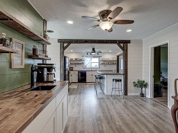 Motivated Seller! Job relocation.Enjoy rustic country living on a 30+/- acres of productive land located in Newton County. This property allows a rural setting while still being 20 minutes from Carthage, Joplin and Neosho. This property features a 1300sqft farmhouse; 3 bedrooms, 2 bath, that has been recently remodeled. Metal roof, New butcher block counters and sitting bar in the kitchen. Enjoy an open dining room, large coffee bar with sink, and a built in commercial ice maker that stays with the home. The yard has pipe fence frontage with double gates for entry to the home as-well-as the barn. Established fruit trees within a few steps of the home. The land is open pastures with some border trees for shade, fenced, cross fenced, and sectioned for rotational grazing with hydrants available for watering livestock. Property is currently being used for sheep. Pond is stocked with several 5+ pound bass and smaller bass for entertainment with the family and friends. North pasture has an additional well available for possible irrigation or for an additional building site. The property has 2 outbuildings; 60X64 barn/shop with electricity, water and partially concreted floor, large enough for fabrication projects and equipment storage with drive-thru availability. Barn also has one horse stall with four pipe runs off the backside. In addition there's a 16X30 shed for animals located near the pipe corral, centrally located for working animals. The land could easily be set up for hunting deer. Property has road frontage to both Pelican and Elder road for easy access. High speed broadband internet available.