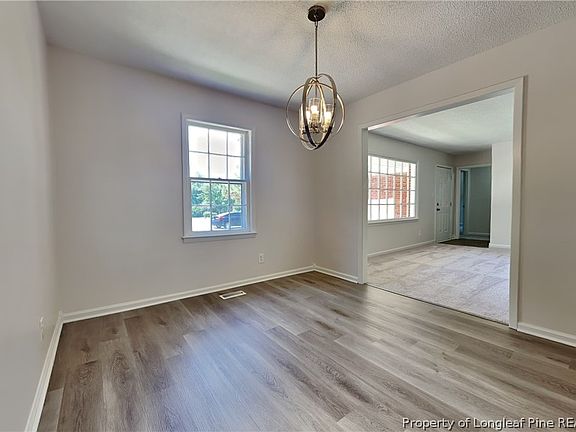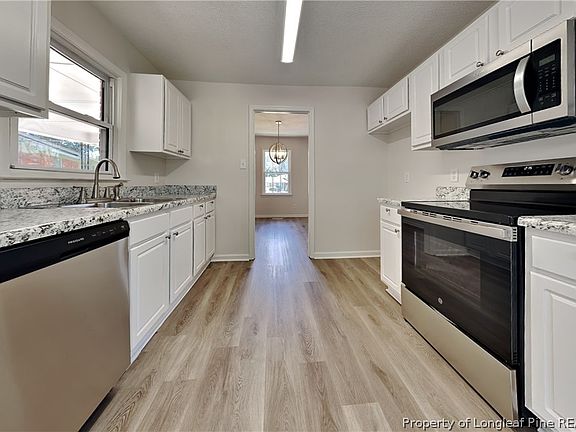 BEAUTIFUL 3 bed, 2 bath brick ranch style home with a brand new HVAC unit and lots of charm is NOW available in a popular and established Fayetteville neighborhood! Not only is this beauty settled on a cul de sac, but it also offers a sizable fenced in back yard with beautiful mature pines throughout and a large back patio area perfect for grilling, offers a welcoming front porch, all brand new interior paint, stunning luxury vinyl plank flooring throughout, beautiful brand new light fixtures, a brand new range, dishwasher, microwave, gorgeous newly painted light colored kitchen cabinets that brighten up the space, plenty of windows throughout that bring in lots of natural light, brand new carpet, a formal dining room that makes for the ideal place to entertain family and friends, a brand new sliding glass door that leads directly to your very own back yard, brand new bathroom vanity(s)and SO MUCH MORE! This is a home that checks all the boxes and is an opportunity worth seeing!