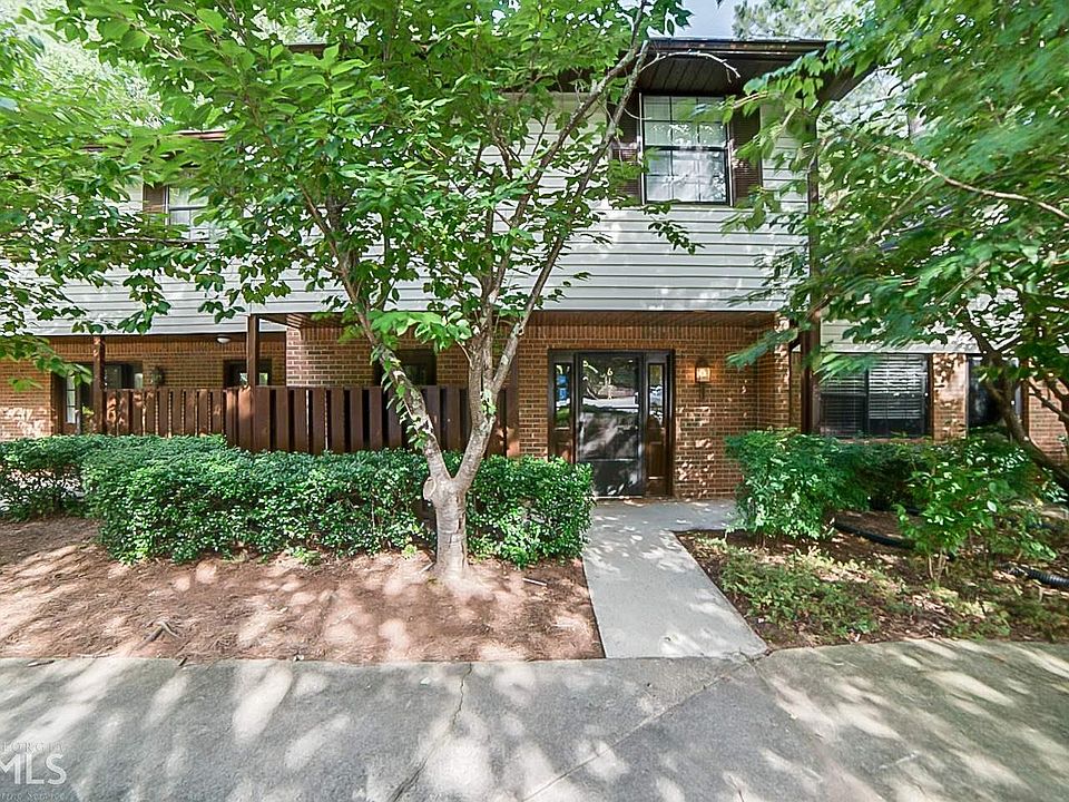 Built in 1982, this Norcross two-story townhome offers a gas fireplace, an enclosed back patio, and storage area.