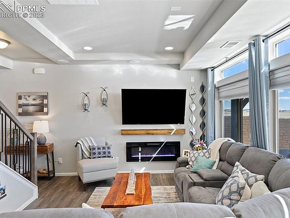 Welcome to this modern 3-story home nestled in the sought-after Banning Lewis Ranch neighborhood, known for its award-winning and highly desired community amenities. Immerse yourself in a vibrant neighborhood offering numerous parks and miles of trails ideal for walking, running, or biking. Enjoy the convenience of a community dog park, 24-hour fitness center, two pools, and tennis and pickleball courts. This move-in ready custom-built home, completed in 2020, boasts exquisite features and design. The heart of the home is the stunning island kitchen, showcasing stacked cabinetry, stainless steel appliances that will remain, and ample space for culinary creations. The living room is a bright and welcoming space, featuring built-in surround sound, a cosmo fireplace, and large windows that flood the room with natural light. The primary en-suite is a luxurious retreat, complete with a walk-in closet and an attached bath featuring dual sinks and an oversized step-in shower. On the upper level, you'll find spacious secondary bedrooms, a convenient laundry room with a washer and dryer included, and a bonus desk area for the kids. Ascend to the third level, where a bonus family room awaits, along with a fourth bedroom and a full bathroom. This space is versatile and can serve as a guest area, teenage space or a home office. Step outside to the fully fenced rear yard, thoughtfully landscaped and ready for outdoor gatherings. Relax on the oversized concrete patio or under the attached gazebo with lighting, offering a perfect ambiance for entertaining. The privacy of no rear neighbors, tucked away in a cul-de-sac, adds to the appeal of this exceptional home. Don't miss the opportunity to call this modern gem in Banning Lewis Ranch your new home. Contact us today to schedule a viewing and experience the beauty and comfort this property has to offer.
