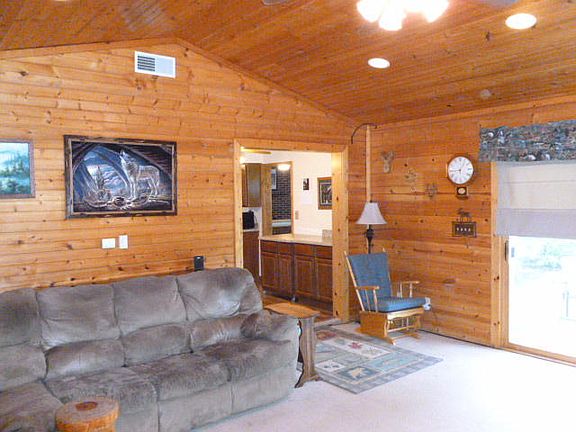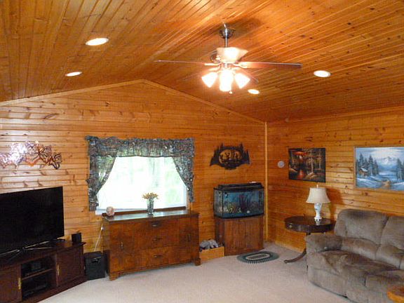 This home is situated on an awesome almost 1 acre lot with many mature trees...with much of it fenced in for privacy, playing, entertaining, gardening and pets. This 3 bedroom ranch features a knotty pine family room with a vaulted ceiling and sliding doors leading to a concrete patio. The livingroom / diningroom combo has a natural brick fireplace. No Basement means there is a 1st Floor laundry and additional attic storage. The oversized 2.5 car garage has plenty of room for vehicles, toys, and a workshop. A/C replaced 2 yrs ago. Great country living. 1 year Home Warranty included.