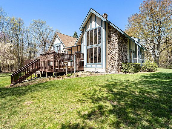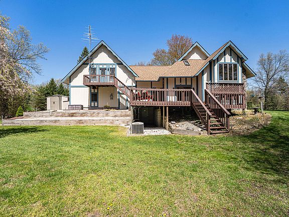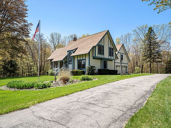 Look no further for your next home! Located within Fruitport Community Schools on 2.4 acres of beautifully landscaped yard with an expansive deck, volleyball court, and horseshoe pits sits this 3 bedroom 3 bath house ready for its new owners. The main level features an exquisite kitchen with quartz countertops, an induction cooktop, a convection double oven, and soft-close cabinetry. Adjoining the kitchen is the dining area which leads into the living room and boasts a floor-to-cathedral ceiling field stone wood-burning fireplace and an abundance of windows. Down the hall is the primary bedroom with a private dressing area containing closets and a vanity, which is connected to the bathroom. On the upper level where you will find 2 more bedrooms, another full bath, and an office area that leads above the garage to a very large room that has so many possibilities for uses. The unfinished walk out basement has ample storage, laundry area and work shop.