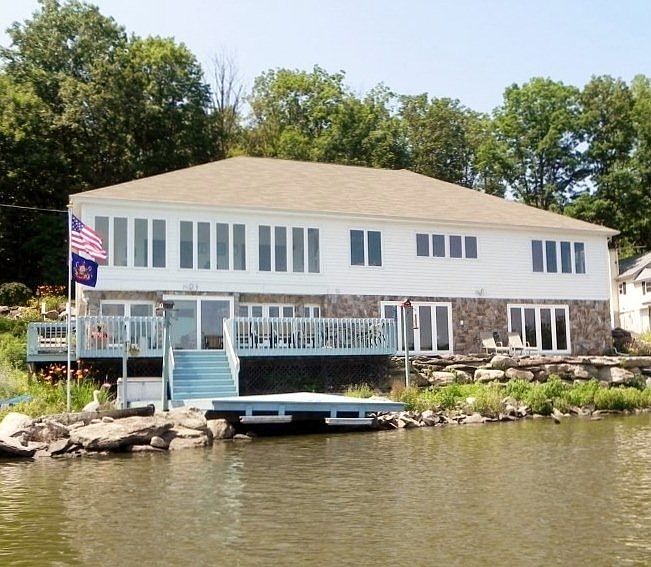 "Trade up to this home and we will buy yours" Magnificent Lakefront Custom Ranch home with 190' of beautiful lake frontage! The first floor boasts a bright, open gourmet kitchen with granite counters & tons of cabinets with slide out drawers, a formal living room, dining room, a master bedroom with en-suite complete with Jacuzzi tub & separate showers, 2 generously sized bedrooms, a full bath, a powder room & a sunroom. Spectacular views & lots of natural light from the wall of windows. The finished lower level features a living room, a 2nd kitchen, 2 offices, a spacious rec room with a hot tub, a media room/4th bedroom & a 2nd sunroom. Great bonus features include a detached 2 car garage, attached 4 car garage & an automatic generator. Entertain or relax on your large back deck. Enjoy fishing, kayaking, boating in your own backyard. Totally reconstructed in 2005 with lots of upgrades! Great location! This stunning, meticulously maintained home can be yours! Don't miss the opportunity for the best of lakefront living!