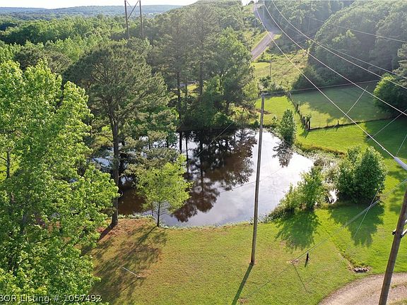 Beautiful Contemporary home with lots of nearby amenities. Located at the foot of Reed Mountain Park, across the street from the Golf Course, and just a short walk to the Arkansas River / Lock and Dam. This 4 bedroom, 3.5 bath home features high ceilings, 2 covered patios, attached 2 car garage, fenced backyard, and a pond. This property can be bought subdivided with 3.3 acres or all 8.77 acres with road leading to timbered property for hunting or clear the timber for river views on a new build.