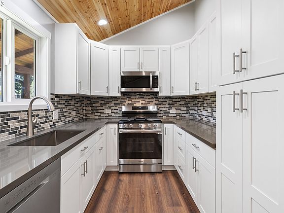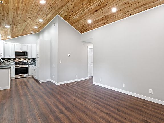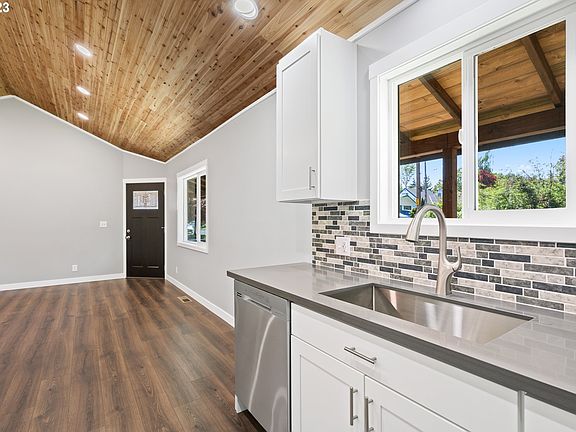 Welcome to your beautifully remodeled Northeast Portland home! Situated on a corner lot, this property boasts stunning vaulted ceilings w/a warm cedar finish, creating a welcoming & spacious atmosphere. The chic kitchen has quartz countertops, tons of cabinets, a gas stove, stainless steels appliances & pantry. This is single level living at its finest! Completely gutted to the studs. Step outside & enjoy the wrap-around patio, fully fenced yard & professional landscaping. New features include double pane vinyl windows, tankless water heater, hardi-plank siding, flooring & interior/exterior paint. Other amenities include 95% efficient furnace, 2 car garage, RV parking, laundry room w/sink, cabinets & countertops & so much more! Energy score of 10!! This will not last! [Home Energy Score = 10. HES Report at https://rpt.greenbuildingregistry.com/hes/OR10195623]