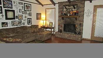 SLEEK WOOD LAMINATE FLOORING THROUGHOUT LIVING ROOM & HALLWAYLARGE BACKYARDVAULTED CEILINGSBEAUTIFUL FIREPLACESALE SUBJECT TO LENDER APPROVAL