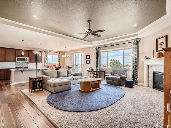 This stunning Wheatlands home features 3 bed/2 bath and just over 4,624 Sq. Ft.+ office and huge, walkout basement. The main floor boasts an open floorplan, beautiful views of the mountains, espresso engineered flooring, spacious living room, warming gas fireplace, dining room with direct access to the backyard space, a walk-in pantry with extensive storage, granite countertops, marble backsplash, double oven and stainless steel appliances. The relaxing primary retreat is located on main-floor and has a 5-piece ensuite with soaker tub, spacious walk-in closet with built-in storage, and dual vanity with granite countertop. This home sits on a beautiful lot with privacy and it is the best deck for entertaining and watching 4th of July fireworks!