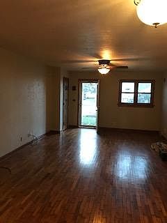 Large living room with hardwood floor. Eat-in kitchen. Attached 1-stall garage. Large back yard with three season porch. Bedrooms have newer carpet. Window A/C unit. No pets, please. No smoking. There is an oven available but no refrigerator. ** Zillow application not required. I have application forms. Renter responsible for utilities. No pets and no smoking. One year lease.