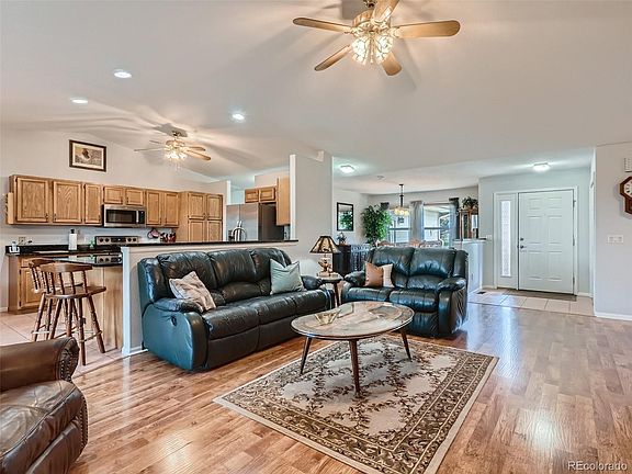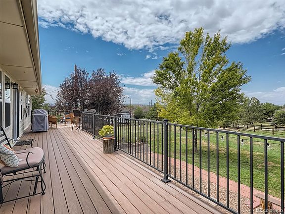 If you've been looking in Castle Pines and hoping for more land then this may be a perfect match! This beautiful ranch home is located on over half an acre and a flat lot that allows for RV parking! Situated close to shopping and easy highway access! Super quiet neighborhood tucked away just north of Castle Pines Pkwy. Vaulted ceilings on the main level, the kitchen and living room are located right near the massive newer back Trex deck that's perfect for entertaining guests. A separate wing for the master bedroom with a completely remodeled bathroom suite including a freestanding soaking tub, enclosed shower, new vanities, tops, mirrors, lighting and new vinyl flooring! Brand new windows throughout the entire home, also new furnace and water heater! You'll find ample space in the kitchen with the pantry, granite counters, and stainless steel appliances. Finished walkout basement boasts an oversized 4th bedroom, 3/4 bath, gas fireplace, workshop, and wide open area to use as a gameroom or additional family room!