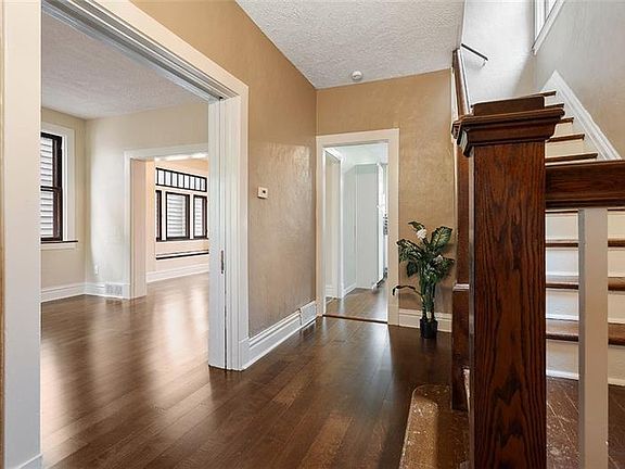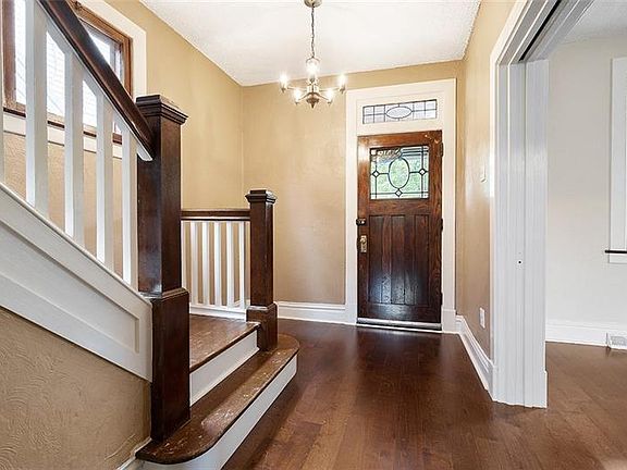 Charming 3 story brick Colonial is move-in ready & in a natural color palette. A large porch greets you with a scenic view of the park located directly acrossed the street. Upon entrance you have original woodwork staircase w/dark mahogany hardwood flooring that leads all throughout the first fl. The spacious LR which features a picture window, eye-catching deco fp & is semi open to the DR. The DR is large enough for family gatherings & features repurposed build ins. Adjacent is the kitchen fully updated w/stainless steel appliances, stylish title backsplash & plenty of counter & cabinet space for storage. On the 2nd level you have 3 BR's all with wall to wall carpets and generous closet space. Finishing off the 2nd fl is a updated full bath w/ tub/shower combo & convenient separation of the bathtub & toilet for privacy. 3rd fl you have a massive fully carpeted flex space that could serve as a 4th BR. The back yard is fenced in providing privacy w/ nice greenery completing this home.
