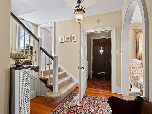 Gorgeous home with beautiful architectural detail. Arched doorways and windows, wood flrs., crown molding and extra wide trim and baseboards. Renovated kitchen with new stainless appliances, new floor, Corian countertops and pantry. Spacious living rm., with natural fireplace. Family rm. leads to a wonderful screened porch overlooking the impeccably kept yard that you will appreciate this summer. Four large bedrooms, walk in closets and 3rd flr attic that could be converted to living space. Updated windows, newer water heater, newer central air. Your family will love this immaculate home.