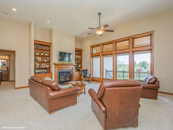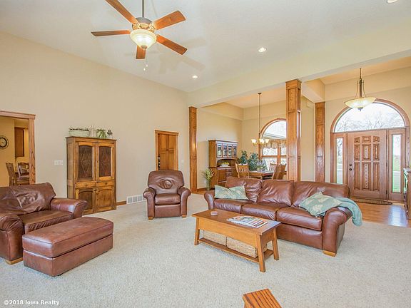 Magnificent acreage just became available for purchase & enjoyment. This property sets in Jasper county but is included in the city of M'Ville easy access to I-80 & 10-15 min. to Dsm. Walk out each level (deck or patio & enjoy the view of the portion of the lake that you'll own as part of this listing. Home has geo thermal heating/cooling & fresh air ventilation system enhancing living comfort. Heated flooring exists in a number of rooms & lower level. HEART OF THIS HOME IS THE KITCHEN. You'll enjoy more than just cooking in this culinary room. Wood tones, under counter lighting & soft close cupboards cannot be resisted, seating for 4 as well as space for lrg dining table. Dual granite counters off kit. can be used for office/space for your added buffet line. Close by is a lovely formal dining room appointed colonades. Awesome home 2+gar. a 48x72 Morton bldg. is all part of the 16.03 acres. List has more features not listed.