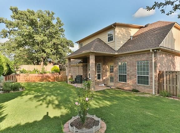Fabulous 4 bedroom, 3 bath, home situated on a beautifully landscaped lot with privacy fencing. Brick with stone accents. Open floor plan. Spacious liv area w gas fp and tall ceilings. Master suite, 2 baths and 1 guest bedroom downstairs with 2 lg beds upstairs plus full bath. Beautiful kit w granite, built in oven, custom cabinets. Covered back patio. Crown molding throughout and TONS of storage.2 HWH, 2 ac and ht units. HOA includes comm pool