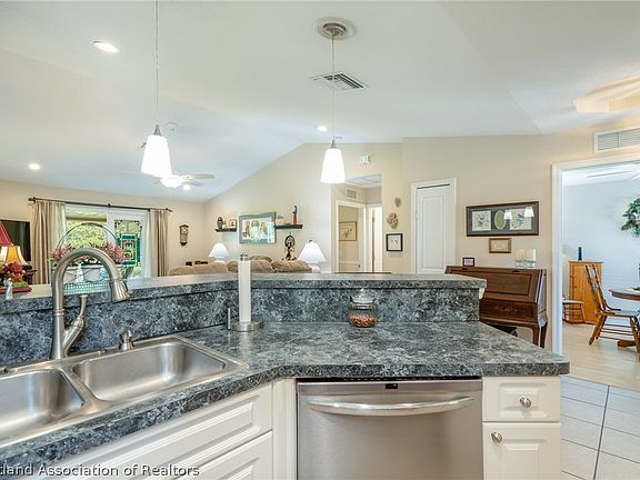 MULTIPLE OFFER SITUATION - PLEASE PRESENT YOUR CUSTOMER'S HIGHEST AND BEST OFFER BY MONDAY MAY 7, 2024 AT 3 PM. Located in the popular neighborhood of Sebring Country Estates/Sebring Hills, this stunning home is ready for new owners to enjoy everything it has to offer! Concrete Block and Stucco 2005 Construction home offering over 1,200 sq ft of spotlessly clean square footage under air, 3 bedrooms on a split floor plan, 2 full bathrooms, HUGE 2 car garage, and a wonderful screened-in back porch! You will adore the attractive landscaping and curb appeal that the front yard provides complete with a perfectly maintained yard and convenient circular driveway! Walking in, you will be impressed by the high vaulted ceilings finished with custom built-in shelving to allow for your own decorative touches. Wonderful centrally located kitchen boasts plenty of counterspace, Stainless steel kitchen appliances, white cabinetry with slide-out storage drawers, copious amounts of storage/counter space, and raised breakfast bar overlooking the central living room! The primary suite offers French Door access onto the screened-in back porch and custom recessed lighting! The ensuite master bath contains a cultured marble dual sink vanity, fully tiled walk-in shower, and a HUGE walk-in closet. The other 2 bedrooms and full 2nd bathroom with shower/tub combo are on the opposite side of the house allowing extra privacy for your visiting guests. Super convenient indoor utility area for easier laundry days - the washer & dryer conveying with the sale of the property. The perfect area for entertaining is present in the 10'x20' screened-in back patio overlooking the back yard! Wood laminate and ceramic tile flooring throughout the home. HVAC system updated in 2017, new architectural shingle roof in 2022, Privacy Fence installed in 2021. City of Sebring water, septic tank utilities. No mandatory HOA or Special District Fees apply to the residents of this wonderful neighborhood, however there is an optional HOA that you may elect to join for the Sebring Country Estates/Sebring Hills neighborhood - Includes a clubhouse and HOA Board that hosts Bingo, various card and board games every week plus potlucks, dances, and other special events!