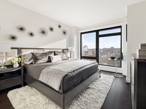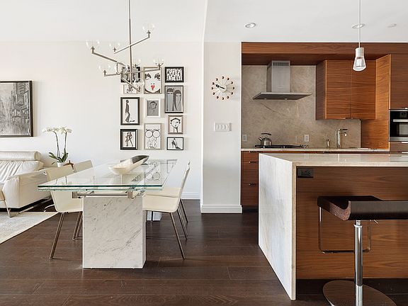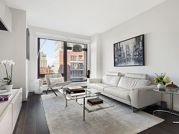 A distinctively modern home fulfilling every need for today's urban life, this generously proportioned, serene split two bedroom residence conveys a spacious loft-like feeling. An open Living/Dining room features 7-inch oak plank floors and floor-to-ceiling windows overlooking Park Slope. The contemporary chef's kitchen designed by Brookman's by Smallbone features horizontal grain American black walnut cabinetry, Cristallo gold quartz countertops, backsplash and island, and a full Miele appliance suite, inviting at-home entertaining. The thoughtfully conceived floorplan offers complete privacy for the lush primary suite with floor to ceiling windows overlooking one of the building's beautifully landscaped outdoor spaces. An oversized, fully outfitted dressing room and a luxurious four-piece bathroom with a steam shower, Waterworks fixtures, and radiant heated marble floors complete the primary suite. The secondary bathroom with a marble-clad deep soaking tub is finished with full height natural stone tile. This apartment features a central Nest-controlled HVAC system and a Bosch washer/dryer and includes a private storage unit. The residents of The Baltic enjoy a full suite of amenities and services including a 24-hour doorman, rooftop terrace with outdoor grills and dining areas, multiple landscaped gardens, bicycle storage, and a light-filled fitness center equipped with Peloton bikes and wrapped with floor-to-ceiling windows. The building's location at Baltic and Fourth Avenue, the crossroads of prime Park Slope, Boerum Hill and Gowanus, allows for easy access to the many trendy boutiques and upscale restaurants in the vicinity as well as renowned cultural institutions and the Atlantic Terminal transit hub.