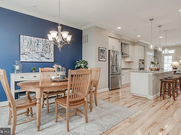 OPEN HOUSE SAT 6/17 12-2PM. Be sure to check out the video tour of this beautiful property. Welcome home to 613 Blandwood Rd! Meticulously maintained and generously appointed with high-end upgrades throughout, this 5 year young Wormald Ashcroft model is sure to please even the most discerning buyers. This property truly shows like a model and offers natural hickory wood flooring, 9ft ceilings, crown molding and wainscotting, a third level loft and rooftop balcony, custom window treatments, built-ins and so much more. Step into your Westerly facing foyer and you will instantly notice the modern and inviting open-concept layout. The dining area leads into your gourmet kitchen which features shaker-style cabinetry, granite countertops, herringbone tile backsplash, stainless steel appliances, gas cooktop, wall oven and convection microwave/oven, a pantry with built in shelving and an oversized kitchen island. The spacious main level living room includes a gas fireplace, built-in wall tree w/bench and storage cubbies, custom floating shelves, and direct access to your maintenance-free, fully fenced rear yard with custom paver patio. The upper level offers 3 bedrooms, all with ceiling fans – one with soaring ceilings and oversized arched windows - a full guest bath with double vanity and quartz countertops, and a BR-level laundry room. The spacious primary suite features a large walk-in closet, custom window treatments, a secondary closet, and a well-appointed en-suite bathroom with double vanity, quartz counters, and a walk-in shower with tile surround. The luxurious third level loft and rooftop balcony offers two ceiling fans (one inside and one outside), a hard-to-find second fireplace that will keep you warm on those crisp fall and winter nights, and a custom fitted Phantom Motorized Retractable Screen allows you to enjoy the rooftop balcony year-round. The finished lower level provides an additional multi-purpose recreational room, another full bath and ample storage space. Enjoy no stress parking via the private 2 car garage. The amenity rich Easthchurch community includes an inground pool, clubhouse, tot lot, front lawn care and snow removal. All of this yet still within 1.5 miles of Historic Downtown Frederick shops, café and restaurants, Weinberg Center for the Arts, Carroll Creek, farmers markets and town festivals. This one will not last long, schedule your private tour today! If GPS app (eg google maps) isn't registering 613 Blandwood, just enter Blandwood Rd (with no house number). The subject property has the number 613 on the transom above the front door. Blandwood is a very short street with only two rows of townhomes on one side of street, so it's easy to find. Call, text or email LA with questions.