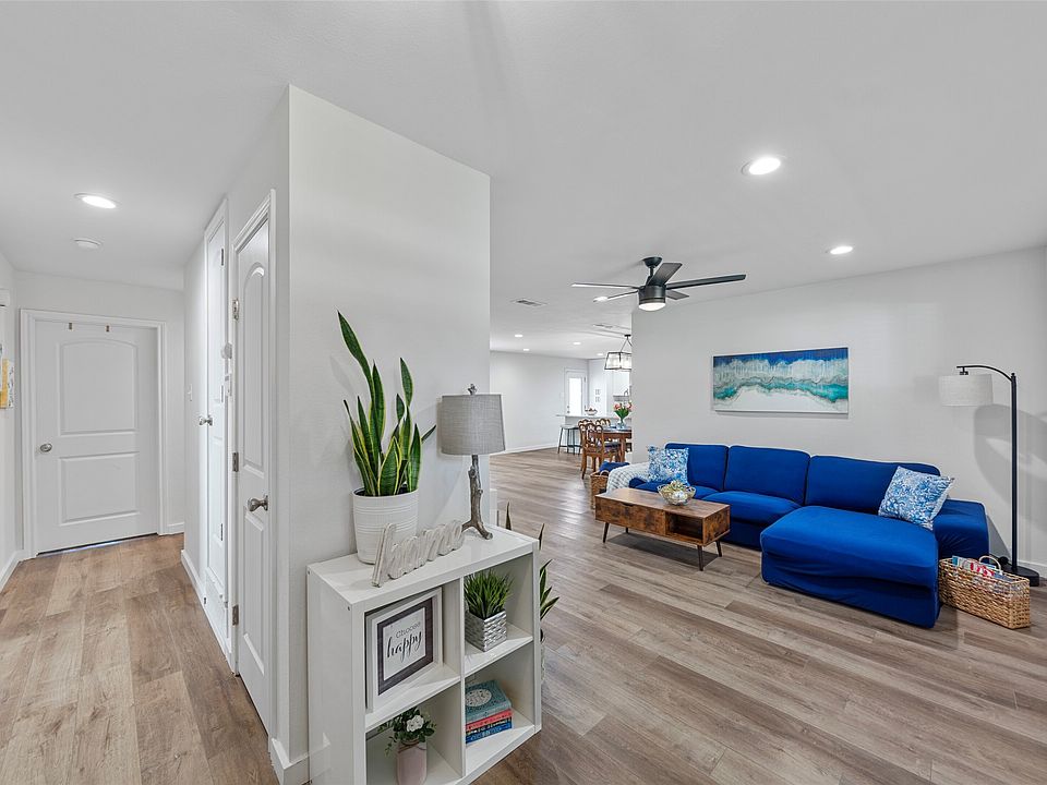 Beautiful and Charming Home in Richardson ISD. This delightful 3-bedroom, 2-bathroom home showcases a modern aesthetic with contemporary colors and materials. The open kitchen leading to the living area features 42” Shaker cabinets, a classic subway backsplash, neutral granite countertops, and stainless steel appliances including a gas cooktop. The bathrooms have been renovated with new tub and surround, shower, vanities, and fixtures. Throughout the house, you'll find updated flooring such as luxury vinyl plank, new tile, and new carpet. The walls and ceilings have been retextured and painted, new doors and hardware have been added, and fence was installed in 2020. This home truly has everything you need! Close to UTD and easy access to 75 and Bush Highway.