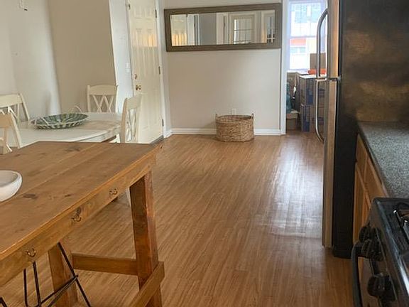 PENDING. Available DEC 2021. PET FRIENDLY. Spacious 2 or 3 bedroom / 2 bath available for rent! This first floor unit has 2 bedrooms, and a HUGE eat-in kitchen, and full bath. Third bedroom (small) can be used as an office or large walk-in closet - can also fit a twin bed comfortably. This unit has sole access to the finished basement with a second full bathroom. This home features wood-look vinyl flooring on first floor, tile floor in basement, fresh paint, fenced in backyard, and laundry hook-up. Call or Text for appts. Unit is still occupied - please DO NOT DISTURB TENANT. Thank you! Refrigerator, microwave, range/oven, and washer and dryer hook-up. Tenant responsible for gas and electric. Owner pays water and sewer. Tenant insurance required. Tenant application and background check, credit check, and job verification. First month's rent and security deposit due upon lease signing. Monthly fee for pets.