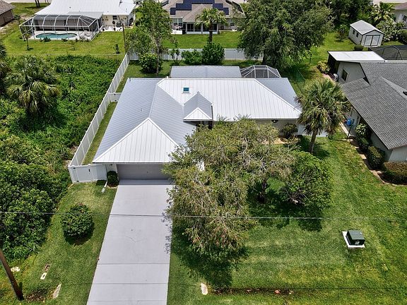 STOP Searching, THIS IS IT! This home has so much to offer: 2022 STANDING SEAM METAL ROOF, 2020 HVAC, 2020 PVC Fenced (3 sides) Back Yard + SEPARATE Fenced Dog Run. Inside FRESHLY painted, NEW LIFE PROOF VINYL PLANK FLOORS. ALL Bedrooms are generous in size. Hurricane Panels + Glass sliding doors have Accordion Shutters. Kitchen: NEW SOLID Surface Counter Tops & Backsplash + a Pass Thru Window w/Snack Bar on the Back Trussed & Screen In Patio. Master Suite has an add'l Screened Patio of its own. Master has a huge Walk In Closet. Master Bath has a Soaking Tub + a Walk-In Shower. + MORE.