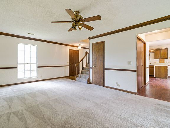 Nice home on culdesac! Living room w/corner brick fireplace! Formal dining room! Kitchen has eat in area, gas stove and lots of cabinets! Master w/walk in closet and full bath! Large deck for entertaining on nice lot with mature trees! Storage building remains! Fresh paint!