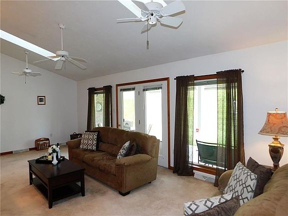 This custom built, no-step ranch is situated on a beautiful, country acre. Built for today's lifestyle, this home has a very open floor plan featuring vaulted ceilings, skylights, a double-sided gas fireplace, beautiful kitchen and a large, covered front porch and rear covered patio overlooking the private backyard. The master bedroom with bath is spacious and there are 2 other bedrooms and bath on the opposite side of the home. The driveway with an extra parking space, is paved to the 2 car attached garage.