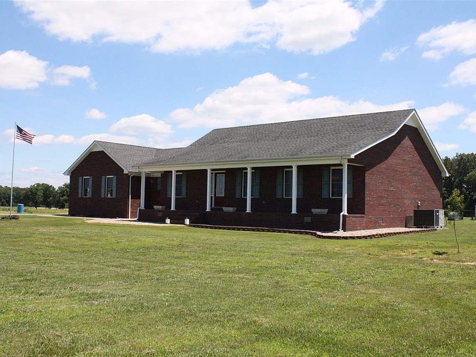 Country living at its' best! This beautiful brick home rests on 6.53 acres and is only a few miles from town. This wonderfully maintained home boasts a huge living room, an abundance of windows for natural light, over-sized closets for storage, a half bath in the garage, two covered porches and a patio begging to entertain. The property also has a large shop for all your toys, and a small, open barn for livestock.