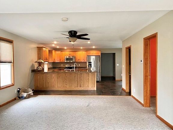 Like New Home. Open concept with nothing to do but move in. 3 Bedroom 2 full baths with attached heated 2 car garage. 10 ft ceilings with 8 ft garage door, 2 floor drains, work bench and plenty of storage area. Kitchen has beautiful custom John Martin cabinets, Quartz countertop with snack/breakfast bar open to living room and dining area. Appliances are stainless steel including convectional double oven. Ceramic tile floors in kitchen, dining and main floor bath. Newer vinyl windows throughout. Roof (2017), Central Air (2016), Water Heater (2019). Underground electrical to house. Newer concrete patio. New concrete driveway. 14x10 shed with roll-up door. Laundry hook-ups in the garage and basement. Privacy fenced backyard with fire pit and gravel pad for recreational vehicles.